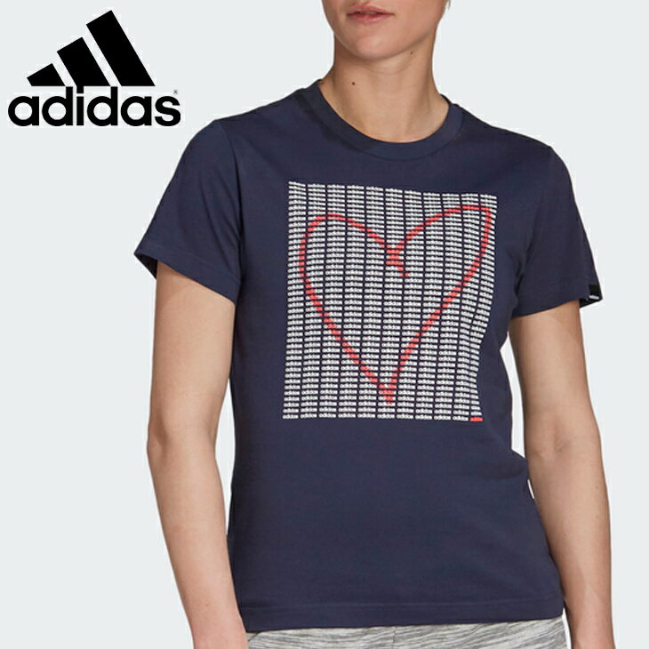 Tシャツ 半袖 レディース アディダス adidas W ADI HEART グラフィック TEE/スポーツウェア 女性 プリントT ロゴ トップス フィットネス カジュアル IXW51 家トレ/IXW51-GD4997